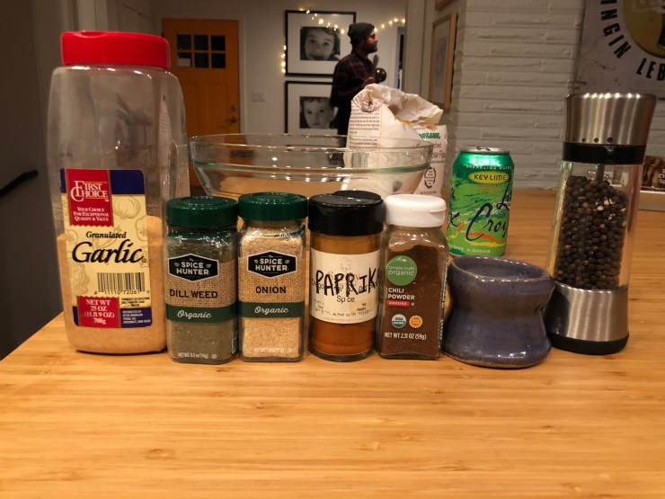 The next day, our chicken is ready to roll and we need to make our dredge (fancy cooking term for those who are in the know). In a touching tribute to my favorite American fast food fried chicken chain, Popeyes, the spices in our dredge will emulate my beloved Cajun Sparkle.