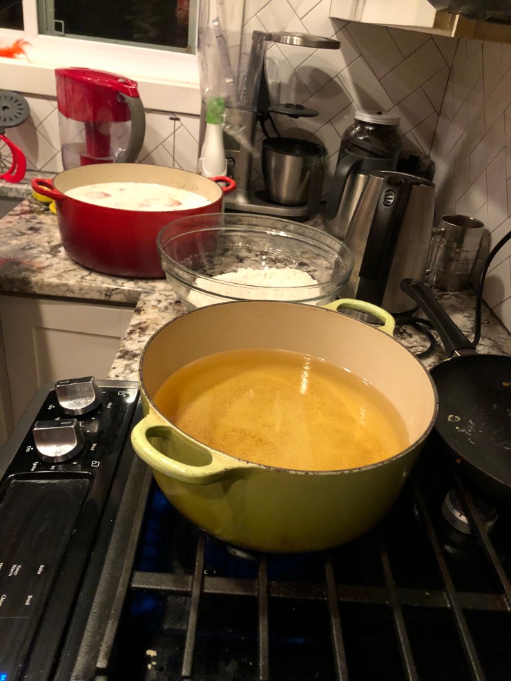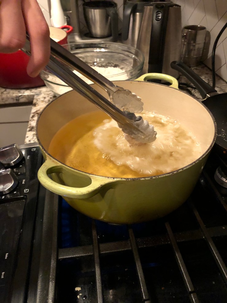 The key to efficient fried chicken production is a good assembly line. Henry Ford would be proud. Actually, probably not, because he hated Jews. Like, a lot. Anyway, let’s fry some chicken! We’re looking for an oil temperature above 350 degrees.
