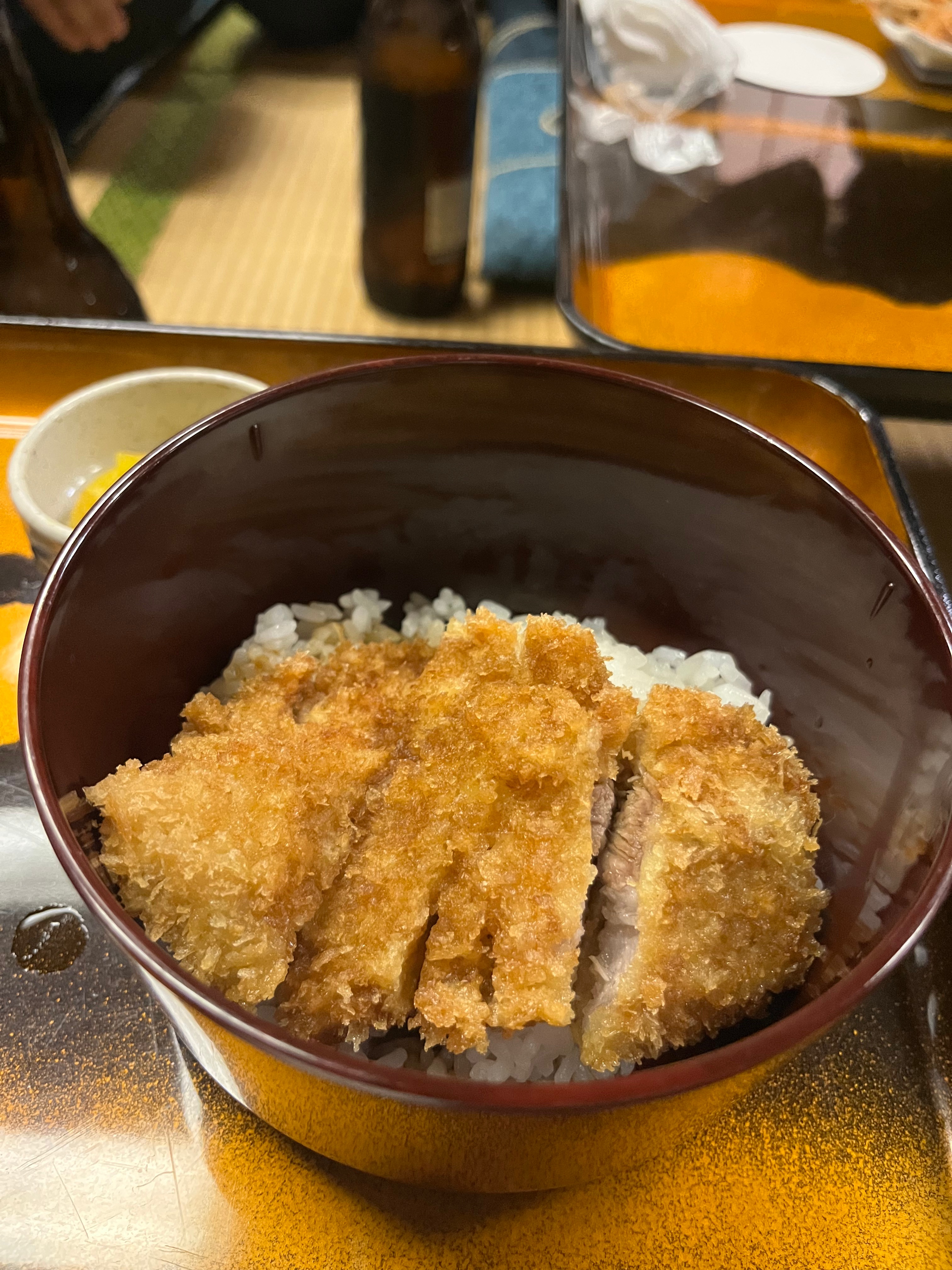 I was concerned I was going to fall onto and through my little table/tray thing like Chris Farley on SNL. Two more rounds of food came by, a basket of tempura, and katsudon, for which the restaurant is famous for. Some of us were still hungry (and thirsty) after it was time to leave the restaurant, so we ended up at an okonomiyaki restaurant just down the street.