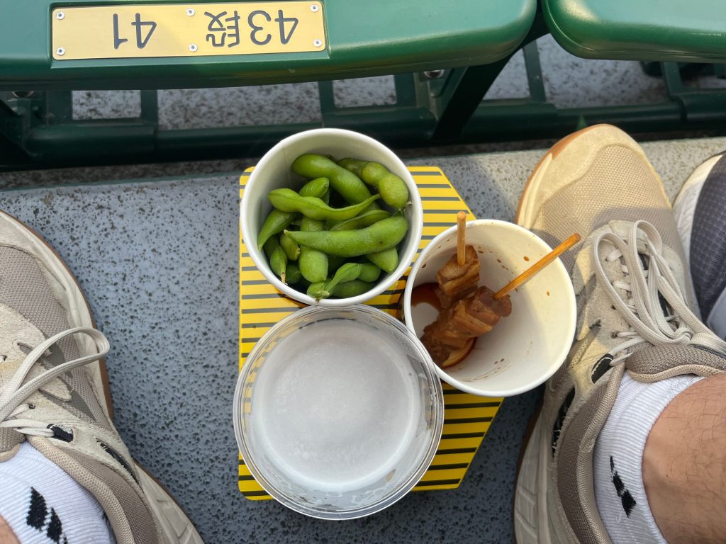 And I don’t just mean some light applause, the atmosphere is closer to a European soccer match than any American baseball game. Cheer leaders (not girls with pom poms, think drill sergeants with whistles) lead specific cheers for every batter that comes to the plate, with subtitles on the Jumbotron so you can follow along. Passionate fans wave flags and play instruments. There’s even a small section of away fans who can be heard cheering loudly when the Tigers are on defense. Though the Tigers lost 1-0 (unexpectedly, especially considering it was to the lowly Chunichi Dragons of Nagoya, who sit 22.5 games back from Hanshin in the standings), affordable food and beverage (1500 yen for a beer/edamame/yakitori combo, with subsequent drinks right at your seat poured by girls with kegs on their backs) made it an excellent time by all. I haven’t been to Wrigley yet, but seeing a game in a small stadium that is packed with rowdy fans – like I did at Fenway – is night and day compared to a game at Nats Park that is 2/3rds empty.