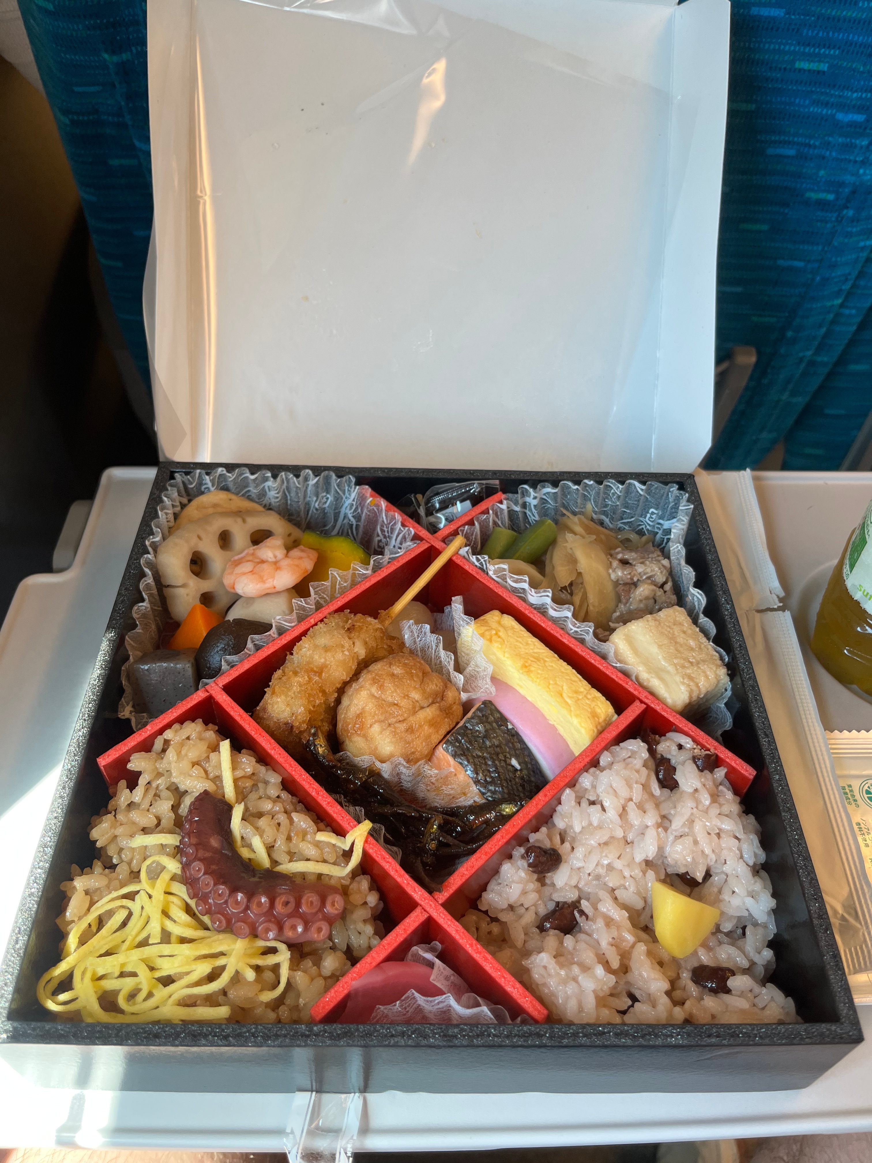 My ticket on the SuperJet (fast boat) was 8800 yen ($60), and on the recommendation of a German guy, I snagged a frozen pork and egg bowl from the gift shop, which they were happy to heat up for me (the cafe was closed).