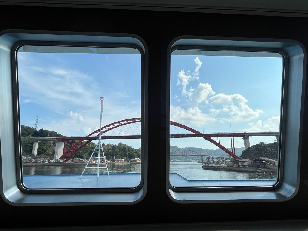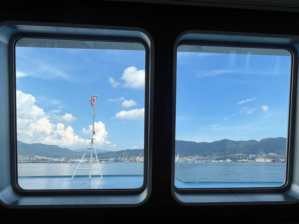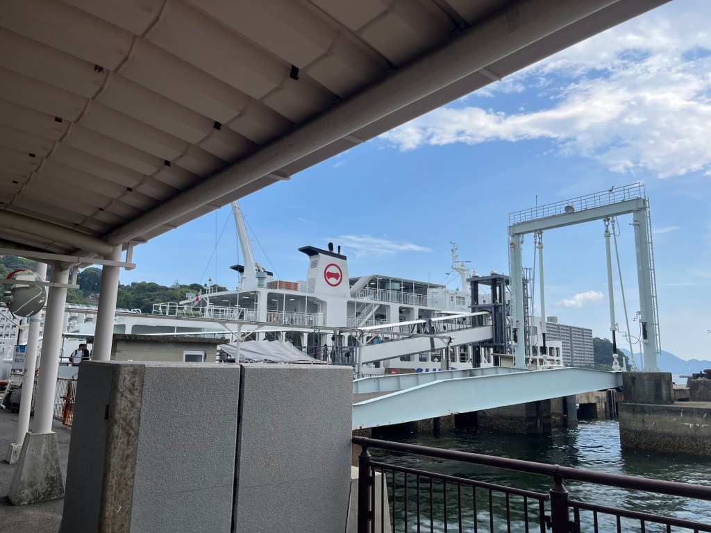 The following morning, I managed to crawl out of bed at 7:30, throw some clothes in my bag, and was out the door by 8:45. I was aiming to get the 10:20 ferry from the tourist port, so when I got to Matsuyama City Station to change trains, I opted to get on the soonest train to Takahama over grabbing breakfast and cash at 7-Eleven. After taking the train to the end of the line and a brief trip on the shuttle, I got to the port at 9:50.