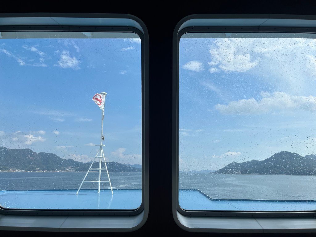 At least I got a window seat on the Shinkansen this time. I arrive in Hiroshima around 1, and get back on the streetcar for the port. This time, I’m taking the slow boat back to Matsuyama. It takes about three hours instead of one, but I’m not in a rush. I hang out on the deck and watch the world go by.