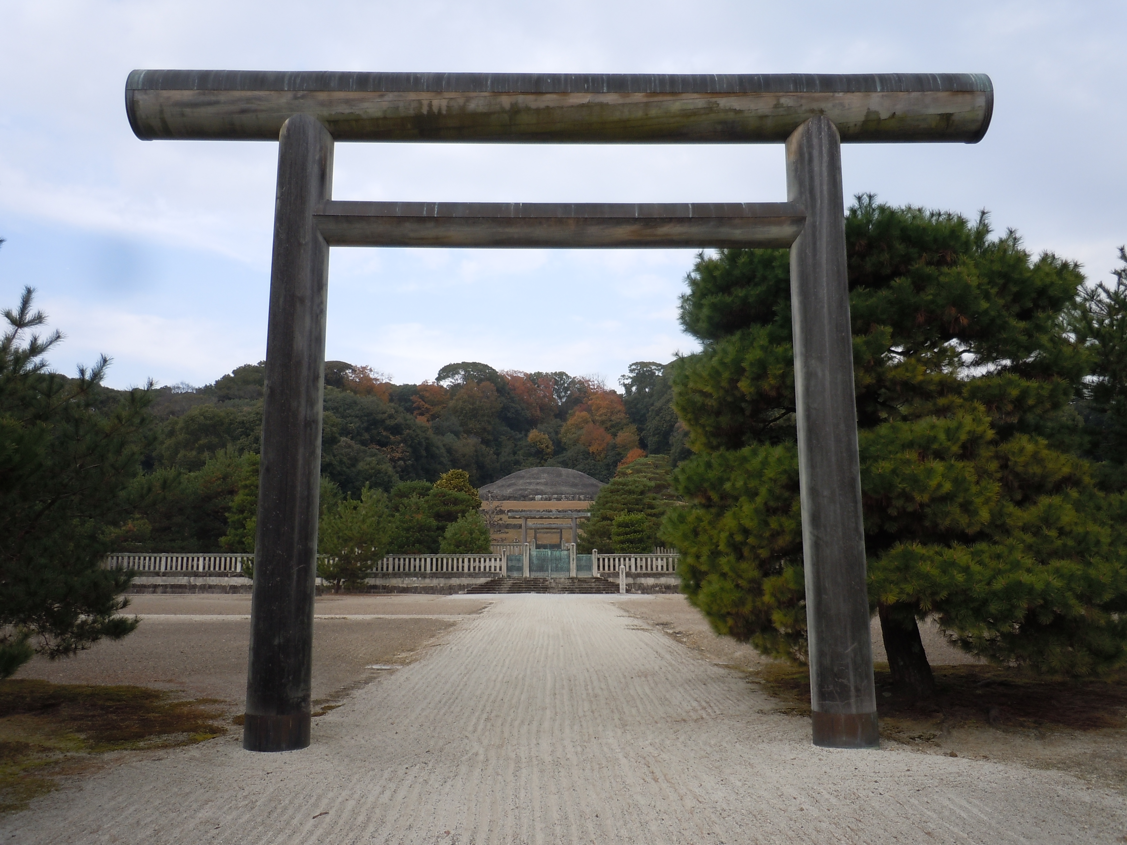 With time to spare, we stepped off the platform at Fushimi-Inari, intending to visit the famous shrines where a path lined with hundreds of tori gates snakes up a mountainside. Unfortunately, so was every other foreigner on the train, and when I saw the traffic jam at the train turnstile, I balked. Bobo suggested that we instead visit the Mausoleum of the Emperor Meiji, located just two more train stops south. For the seismic role that he played in the history of Japan, his tomb is without much fanfare, tucked away in a quiet park.