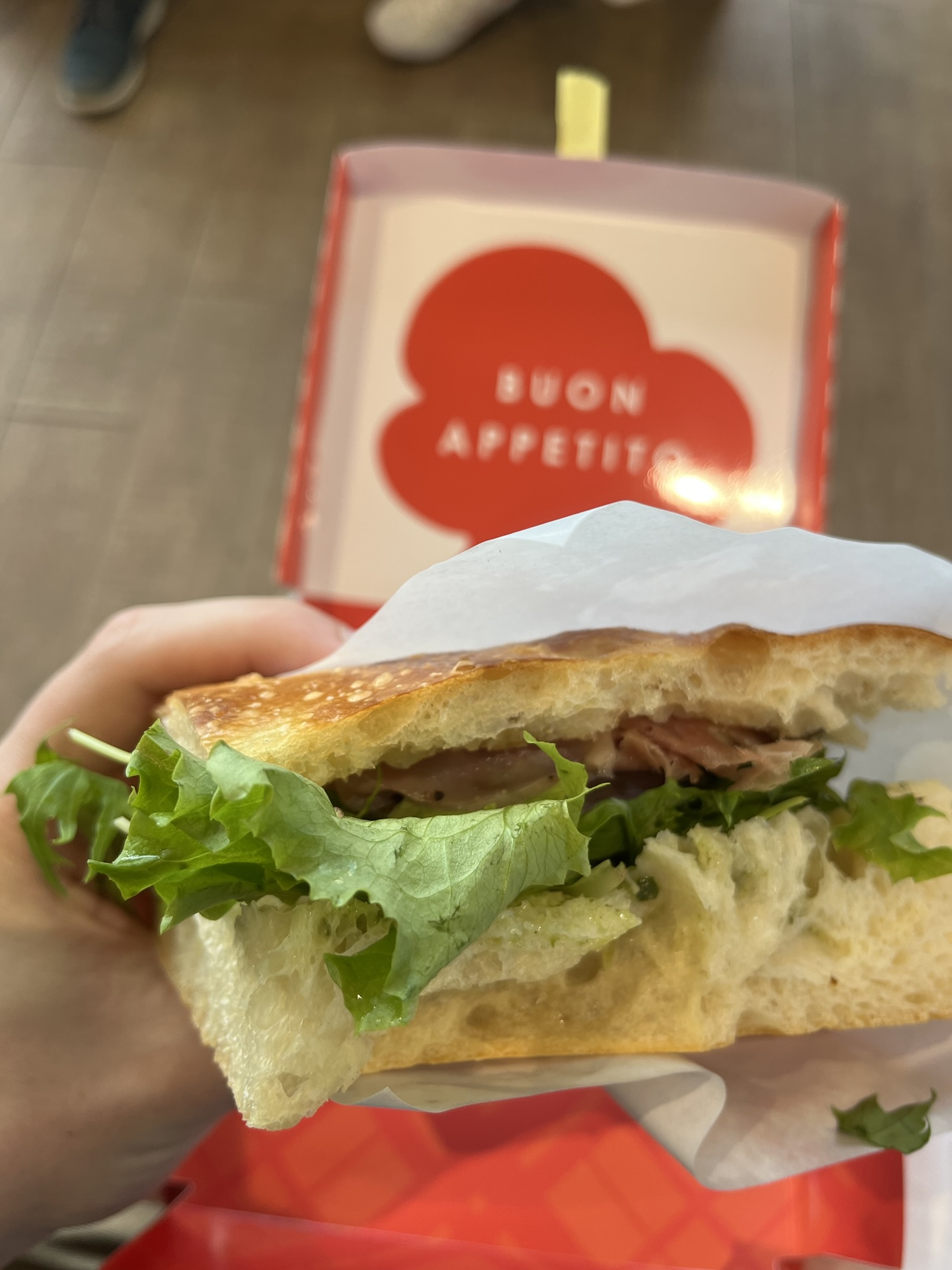 Cured meat, mozzarella, and fresh vegetables sandwiched in between focaccia: what’s better than that? The answer is absolutely nothing. On to the aquarium.