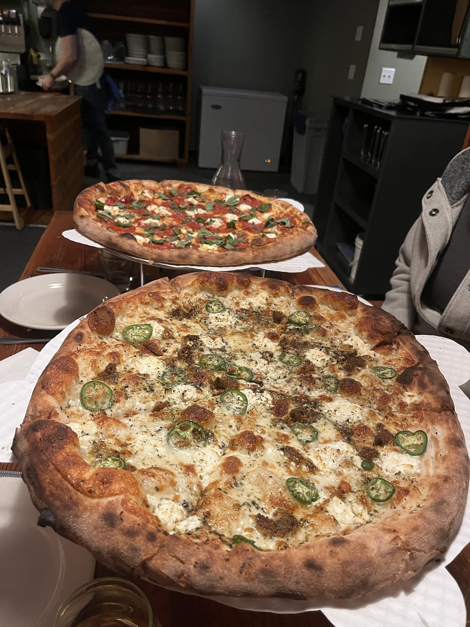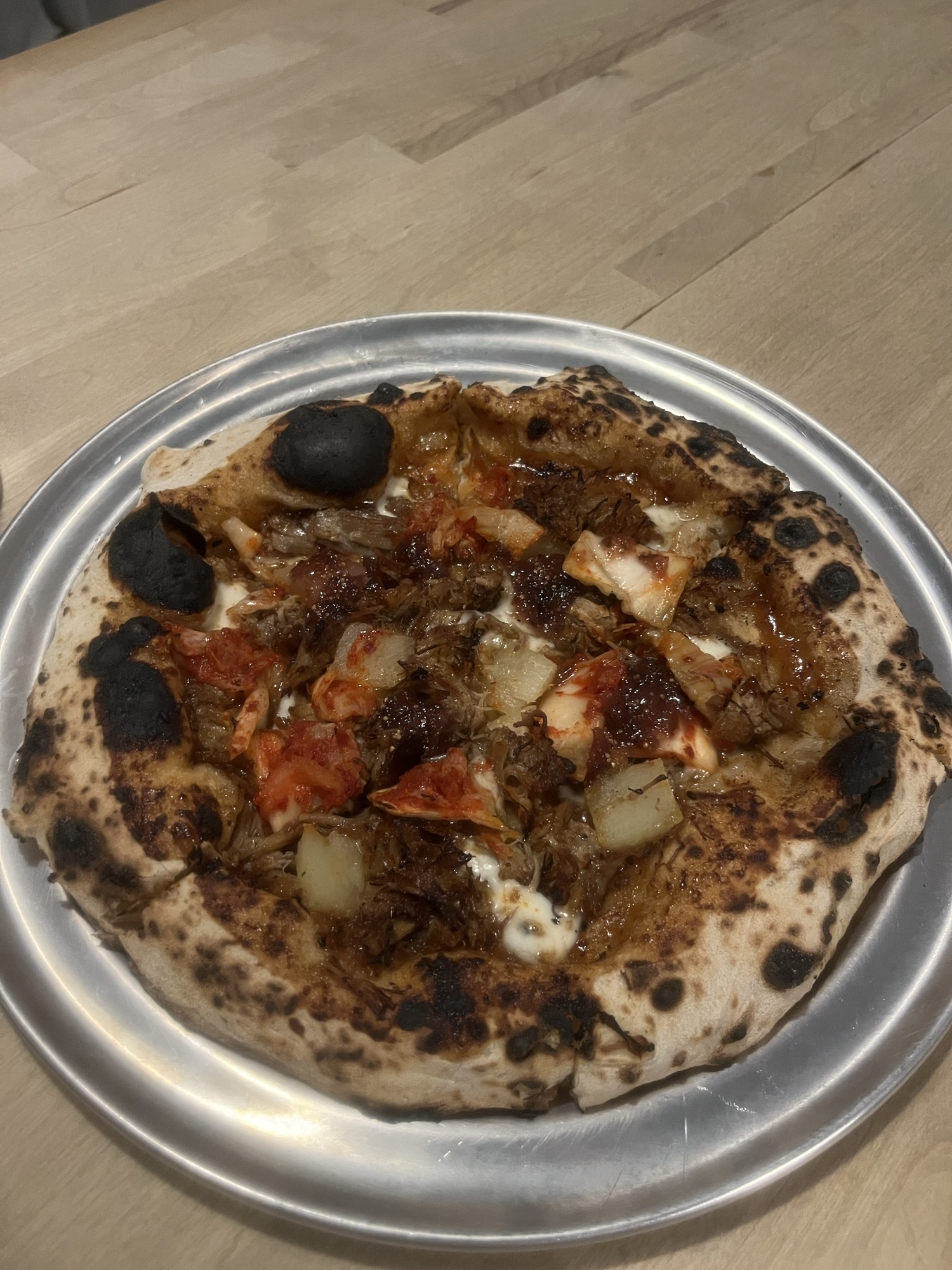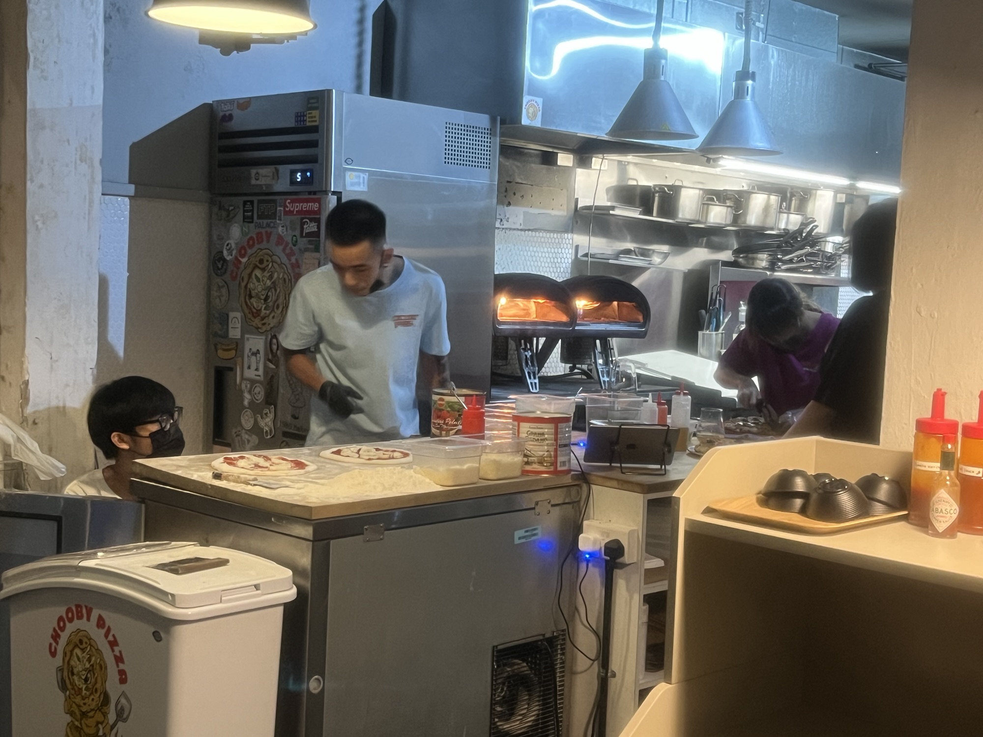 In Singapore, I had two different pizza spots. The former was an occasional (maybe two or three times a week) pop-up in a craft brewery in Little India. The operation consisted of a folding table with one of those portable little pizza ovens on top. They turned out delicious Neapolitan-style pizza, in addition to fried whitebait (one of my favorite bar-type snacks).