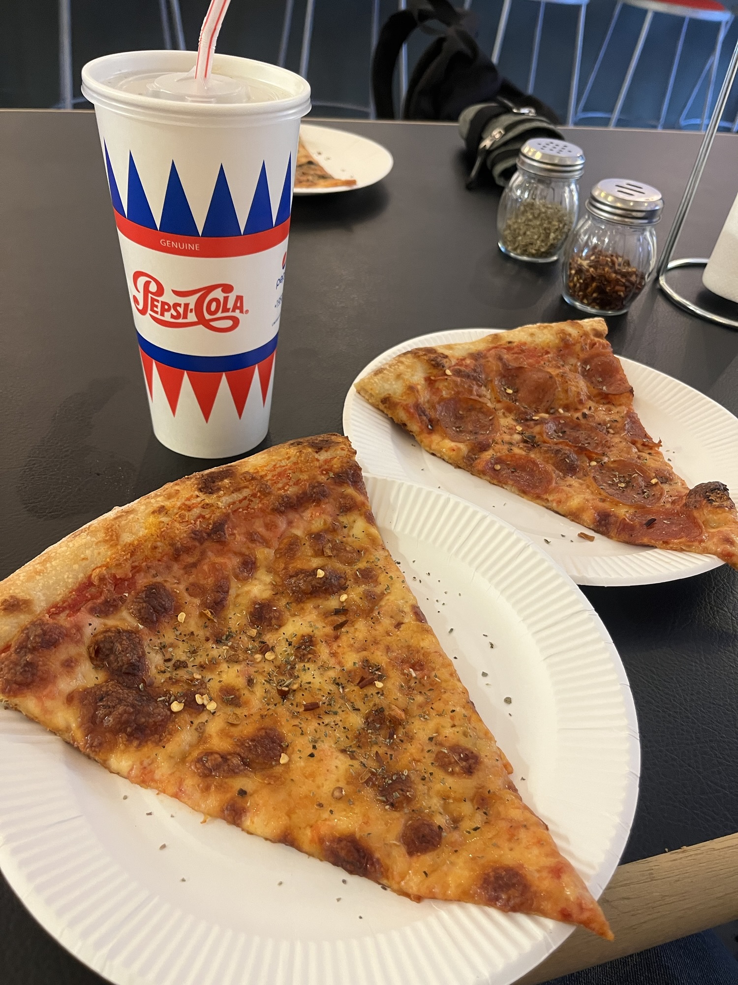 Two textbook slices. Undercarriage looks nice. Doesn’t flop when you fold it. Seasoning shakers, check (although no parm). It’s $9 for two slices and my Coke. That’s exactly what it should cost. Is it the best pizza I’ve ever had in my entire life? No. But it’s exactly what I’ve been wanting all this time. In the words of my eloquent friend John Matsuyama (not his name per se, but his last name sounds similar and is hard to pronounce, so it’s close enough), the chef demonstrates “a fundamentally strong understanding of pizza.” It’s enough to make me emotional. They also offer fried chicken, which is kind of wild to me (I would be wary of a pizza place back home that served chicken, and vice versa), but it doesn’t look half bad, and I’ve also been missing my beloved Popeyes.