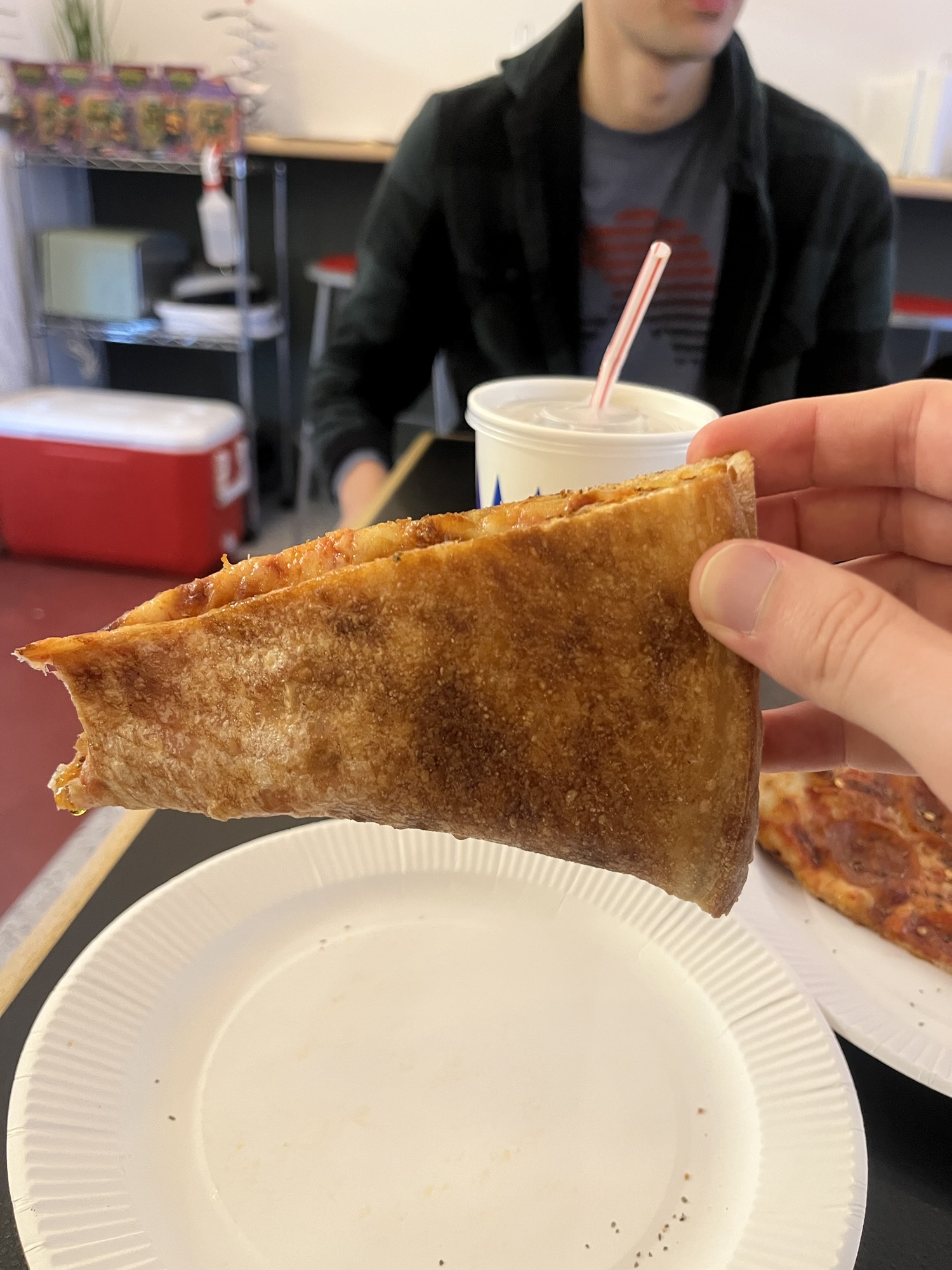 But, in case you weren’t aware, I’m in Japan. While they love Italian food here, American pizza is harder to find. Especially in a third-tier city like Matsuyama (that’s an objective reading, not a diss – Portland is probably a third-tier city as well). I’ve gone without pizza for a long time now. Too long. I haven’t been counting the days, but judging from my camera roll, the last time I had pizza was at Dimo’s in Portland on June 27th. This is a travesty – maybe the longest I’ve gone without pizza in my entire life. Believe me, I’ve searched. I patronized an Italian restaurant where you can see the brick pizza oven as you walk past – twice. The pizza was whatever – small, Neapolitan, and resistant to my efforts to fold it. It wasn’t what I was looking for. So for dramatic effect, let’s pretend like it didn’t happen. One day, I visited a burger spot in Iyo run by one of the few non-ALT foreign residents (a guy from LA who’s been living here for a dozen years), and asked him if there was a place to get a New Yorkesque slice – he said no. On my winter vacation, I was looking for a slice, but I was shot down in Tokyo and had an unfulfilling square slice in Hong Kong. I had mostly given up.